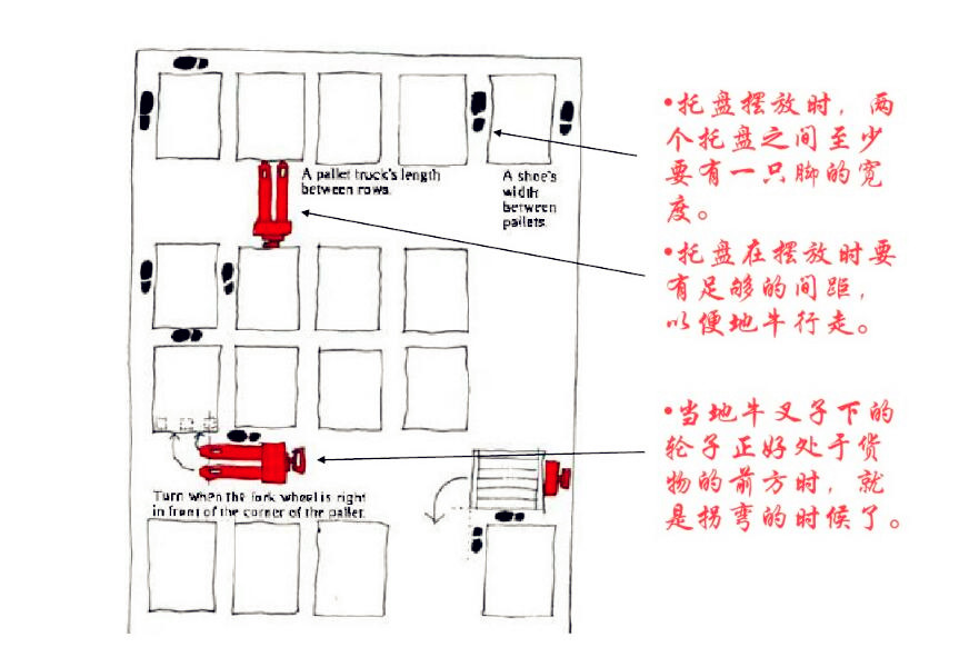 6、記住手柄是活動的,所以在載重貨物過程中盡量以拉的方式促使叉車以及貨物產生位移;