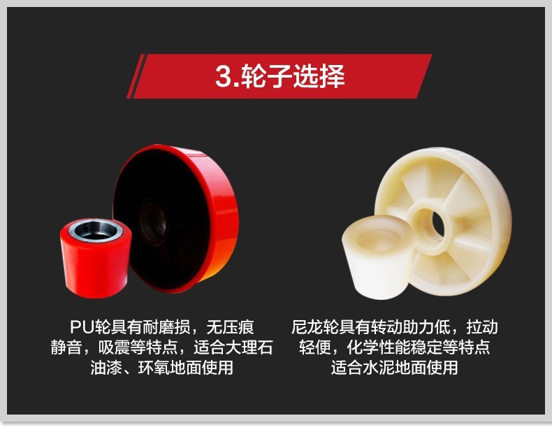 查看詳情手動(dòng)升高叉車聚氨酯材料行走輪與橡膠行走輪主要差異區(qū)別在于行走輪軟硬不同。聚氨酯材質(zhì)行走輪與橡膠材質(zhì)行走輪適用于不同行業(yè)不同使用需求。