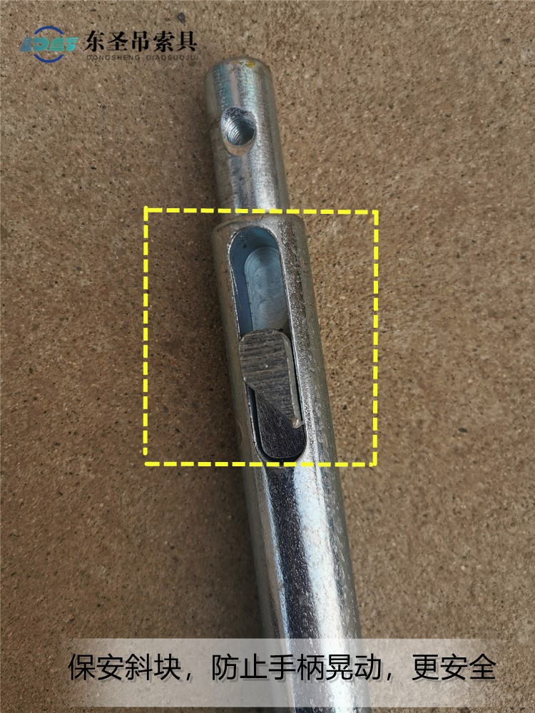 5、完成吊運后,向內按動手柄按鈕,使手柄上的保安鍵與保安銷軸脫離,從而來關閉磁力牽引。